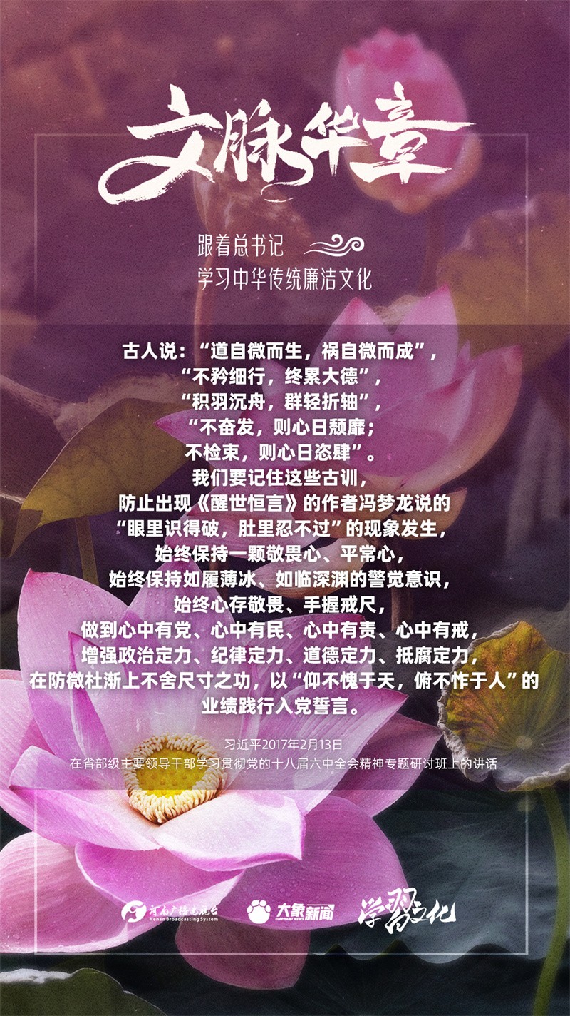 中華優(yōu)秀傳統(tǒng)文化蘊含著豐富的廉潔文化,習(xí)近平總書記曾指出:沒有中華優(yōu)秀傳統(tǒng)文化、革命文化、社會主義先進文化的底蘊和滋養(yǎng),信仰信念就難以深沉而執(zhí)著??倳洺3R?jīng)據(jù)典,教育引導(dǎo)廣大黨員干部正心修身,涵養(yǎng)文化,守住為政之本。讓我們一起跟著總書記學(xué)習(xí)中華傳統(tǒng)廉潔文化。今天推出第三期。
