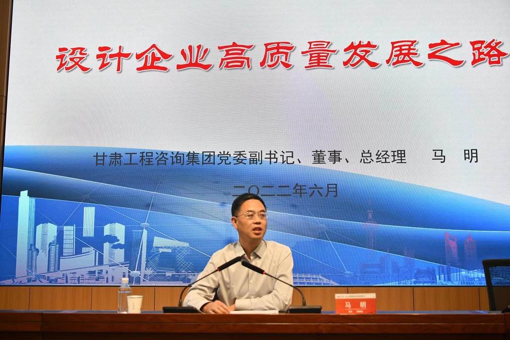 6月9日,在甘肅省建筑設(shè)計(jì)研究院有限公司喜迎建院70周年華誕之際,集團(tuán)公司黨委副書(shū)記、總經(jīng)理馬明受邀以《設(shè)計(jì)企業(yè)高質(zhì)量發(fā)展之路》為題作專題講座。集團(tuán)公司經(jīng)理層成員、各部門(mén)主要負(fù)責(zé)人及兄弟單位主要領(lǐng)導(dǎo),建筑設(shè)計(jì)院領(lǐng)導(dǎo)班子成員、全體中層干部聆聽(tīng)講座。