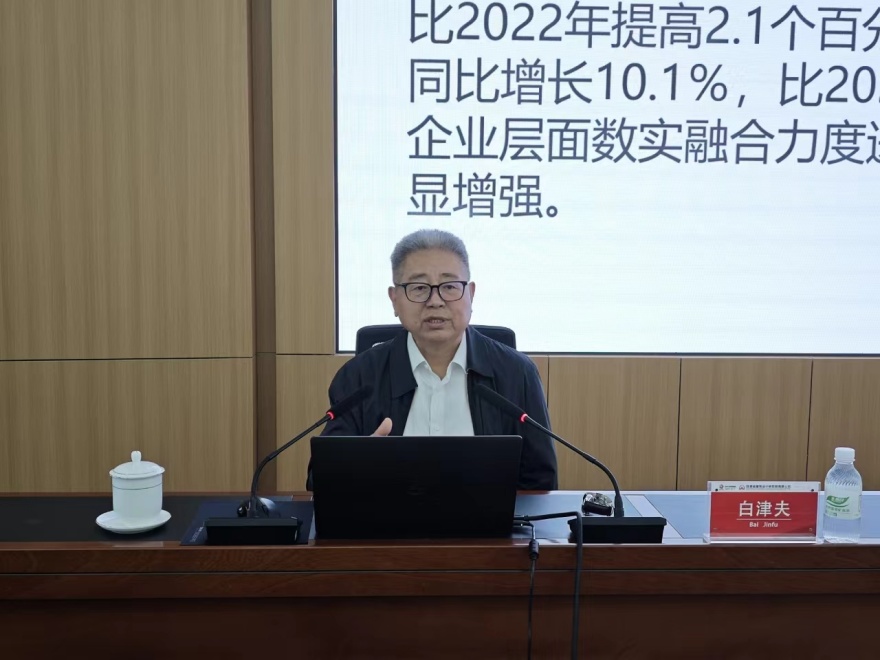 白津夫院長(zhǎng)圍繞“黨的二十屆三中全會(huì)數(shù)字經(jīng)濟(jì)發(fā)展新論斷、我國數(shù)字經(jīng)濟(jì)發(fā)展進(jìn)入新階段、企業(yè)數(shù)智化發(fā)展新路徑、營(yíng)造融合發(fā)展新場(chǎng)景”等四個(gè)方面,以宏大的視野、敏銳的視角深入闡釋了數(shù)字經(jīng)濟(jì)在全球化背景下的戰(zhàn)略意義及對(duì)新發(fā)展格局的重大影響,為集團(tuán)公司進(jìn)一步探索數(shù)字化發(fā)展新路徑、新模式、新業(yè)態(tài),加快推進(jìn)數(shù)實(shí)融合、實(shí)現(xiàn)數(shù)字化綠色化雙轉(zhuǎn)型提供了具體指導(dǎo)。