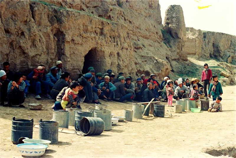 上世紀(jì)70年代,甘肅中部的定西等十多個縣大旱,數(shù)百萬群眾等待政府送水(來源:甘肅省水利廳網(wǎng)站)