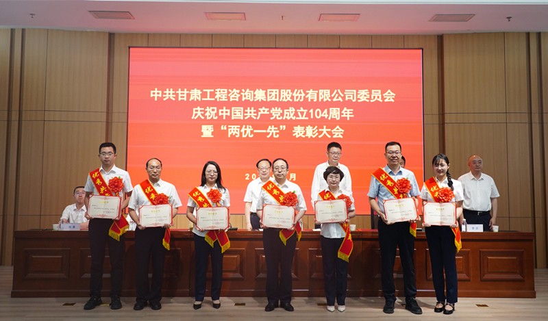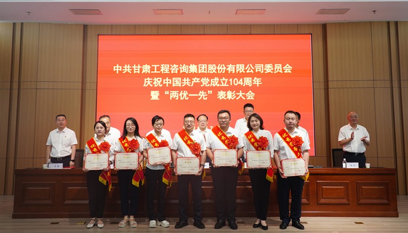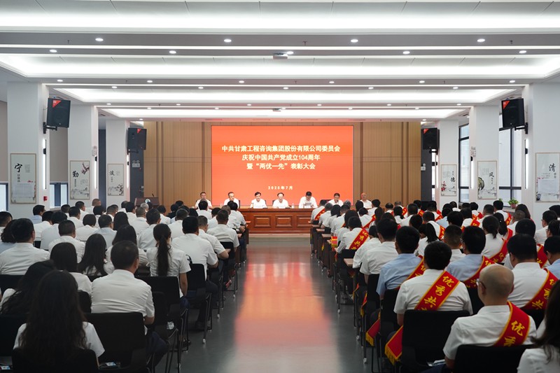 7月1日,甘肅工程咨詢集團(tuán)召開慶祝中國共產(chǎn)黨成立104周年暨“兩優(yōu)一先”表彰大會(huì),回顧黨的輝煌歷程,弘揚(yáng)偉大建黨精神,全面展示集團(tuán)黨建工作成效和黨員干部昂揚(yáng)風(fēng)貌,激勵(lì)各級(jí)黨組織和全體黨員凝心聚力、擔(dān)當(dāng)作為,奮力推動(dòng)集團(tuán)公司高質(zhì)量發(fā)展邁向新臺(tái)階。集團(tuán)公司黨委書記、董事長張佩峰出席并講話,總經(jīng)理、董事陳一夫及在家領(lǐng)導(dǎo)班子成員出席,黨委委員、副總經(jīng)理孟康榮宣讀表彰決定,紀(jì)委書記、監(jiān)察專員師宗正主持會(huì)議。
