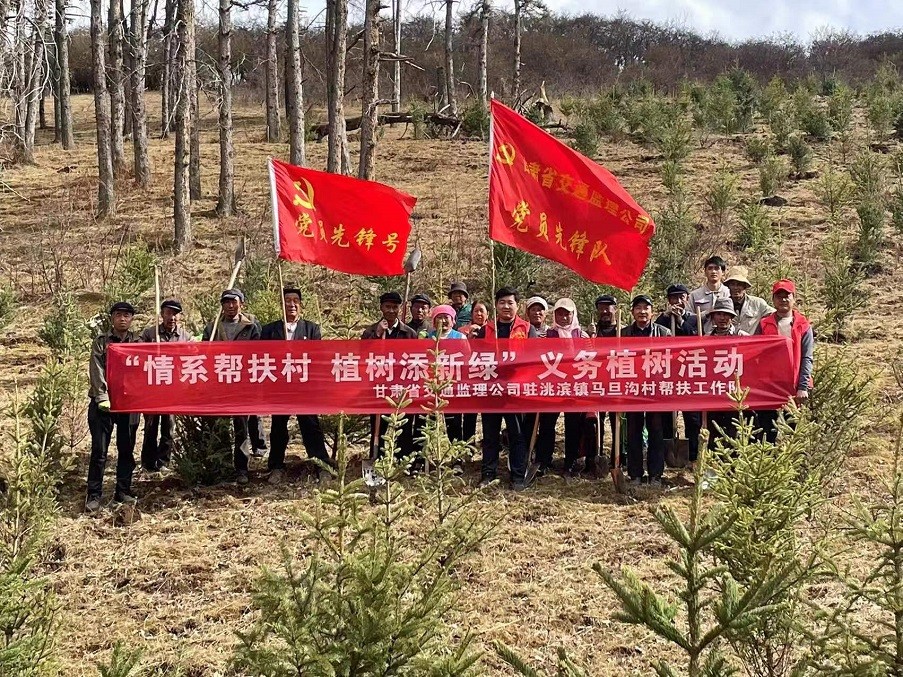 為積極響應(yīng)習(xí)近平總書記“全社會(huì)都做生態(tài)文明建設(shè)的實(shí)踐者、推動(dòng)者,讓祖國(guó)天更藍(lán)、山更綠、水更清、生態(tài)環(huán)境更美好”的號(hào)召,以打造“五無甘南”,創(chuàng)建“十有家園”為目標(biāo),加快推進(jìn)鄉(xiāng)村振興戰(zhàn)略實(shí)施,共建生態(tài)宜居宜業(yè)的美麗鄉(xiāng)村,近日,甘肅省交通工程建設(shè)監(jiān)理有限公司駐臨潭縣洮濱鎮(zhèn)馬旦溝村幫扶工作隊(duì)積極發(fā)揮自身職能,協(xié)同包村干部、村“兩委”成員、駐村黨員、義務(wù)志愿者及群眾代表等開展義務(wù)植樹活動(dòng)。