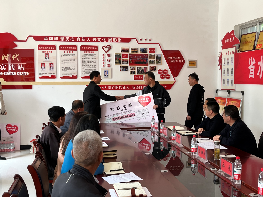 座談會(huì)上,莊頭、廖坳兩村黨支部書記就村級基本情況和近期工作作了介紹,駐村工作隊(duì)匯報(bào)了駐村幫扶工作開展情況。水電設(shè)計(jì)院和董志鎮(zhèn)簽訂了幫扶協(xié)議,并向莊頭村、廖坳村捐獻(xiàn)幫扶資金及黨建圖書100余冊。