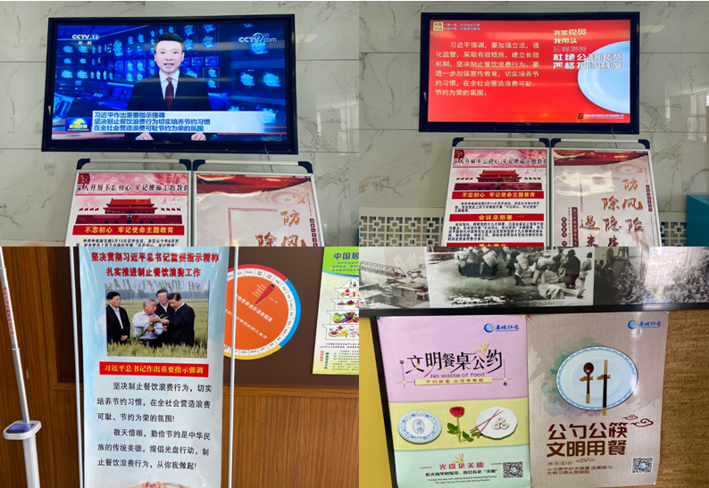 通過在公司一樓大廳的LED屏上滾動播放習近平總書記提出杜絕餐飲浪費的重要指示、制作播放關于節(jié)約用餐、文明用餐的PPT、在宣傳欄和食堂醒目位置張貼宣傳圖片和條幅標語等,遏制“舌尖上的浪費”,消除“剩宴”,最大限度減少餐飲浪費。廣大黨員干部還簽訂《杜絕餐飲浪費承諾書》,充分發(fā)揮黨員表率作用,以黨員帶動群眾,在公司范圍內(nèi)營造浪費可恥、節(jié)約為榮的良好氛圍。