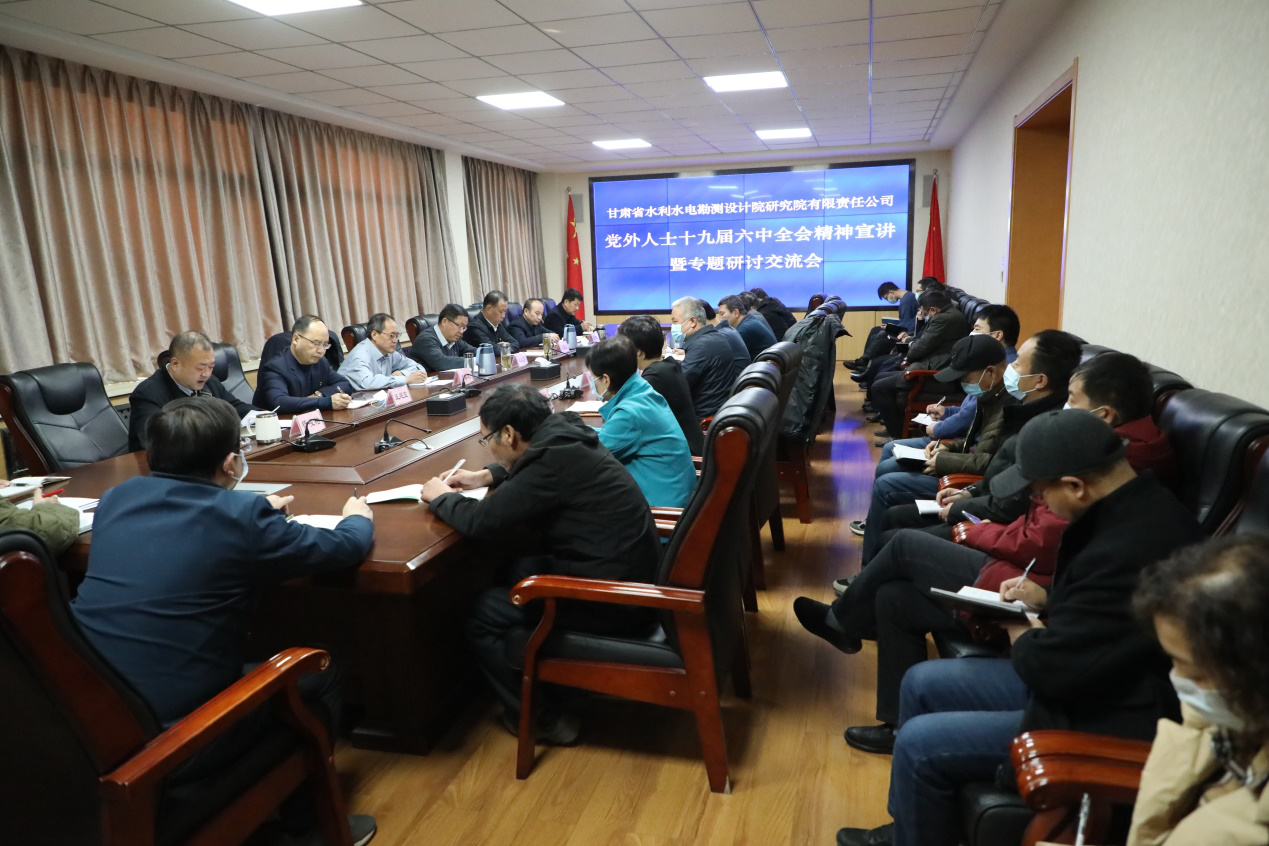 12月13日,水電設計院組織黨外人士宣講研討中共十九屆六中全會精神,九三學社、民主促進會、無黨派人士、少數民族和黨外知識分子代表共40余人參加。