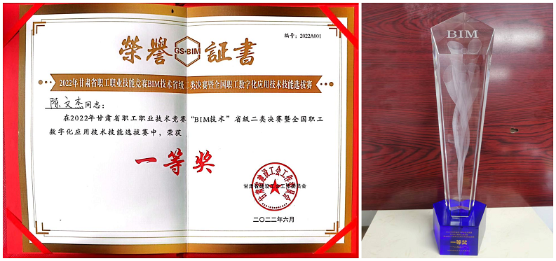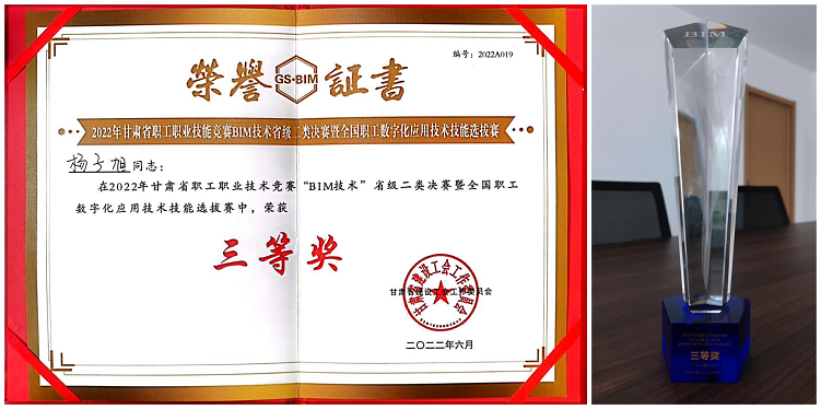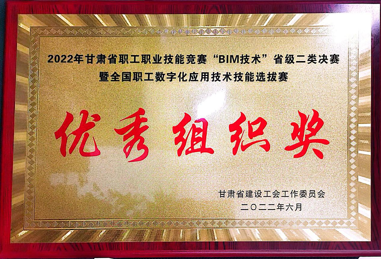 近日,在甘肅省職工職業(yè)技能競賽“BIM 技術(shù)”省級二類決賽暨全國職工數(shù)字化應(yīng)用技術(shù)技能選拔賽中,甘肅省建筑設(shè)計(jì)研究院有限公司榮獲優(yōu)秀組織獎,選送的參賽選手陳文杰和楊子旭分別榮獲一、三等獎。