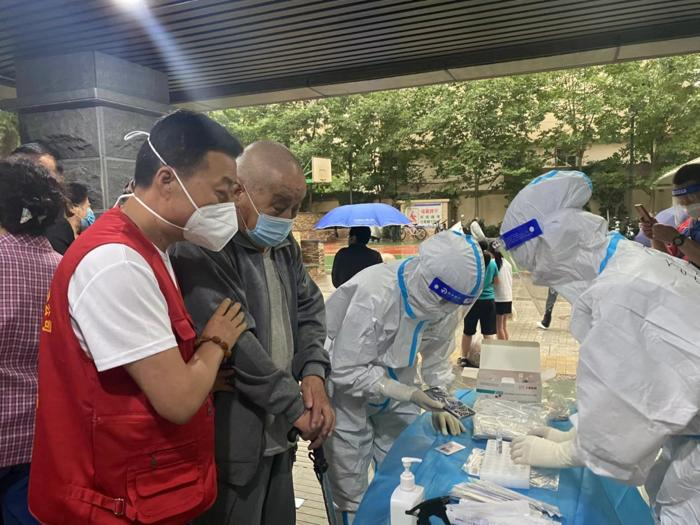 盛元小區(qū)一共有5個(gè)單元,500多戶,2000多人;新港城小區(qū)屬于城關(guān)區(qū)比較大的居民小區(qū),分為ABCDE五個(gè)區(qū),共有300多個(gè)單元,5200多戶,16000多人居住。面對(duì)這些情況,陳萬(wàn)國(guó)、李朋袀和白萬(wàn)景等志愿者沖在前面,維持檢測(cè)秩序,布置核酸檢測(cè)點(diǎn)位,分發(fā)甘肅抗疫中藥包,投放樓棟垃圾,匯總登記問(wèn)題并與社區(qū)和醫(yī)務(wù)人員溝通逐一解決。接受核酸檢測(cè)的隊(duì)伍中,有上至八九十歲的老人,下至三四歲的孩童,還有行動(dòng)不便的病人,他們總是無(wú)微不至,耐心引導(dǎo),尤其在遇到一些行動(dòng)不便的老人和病人時(shí),他們主動(dòng)上前攙扶,把貼心的溫暖送給每一名群眾。