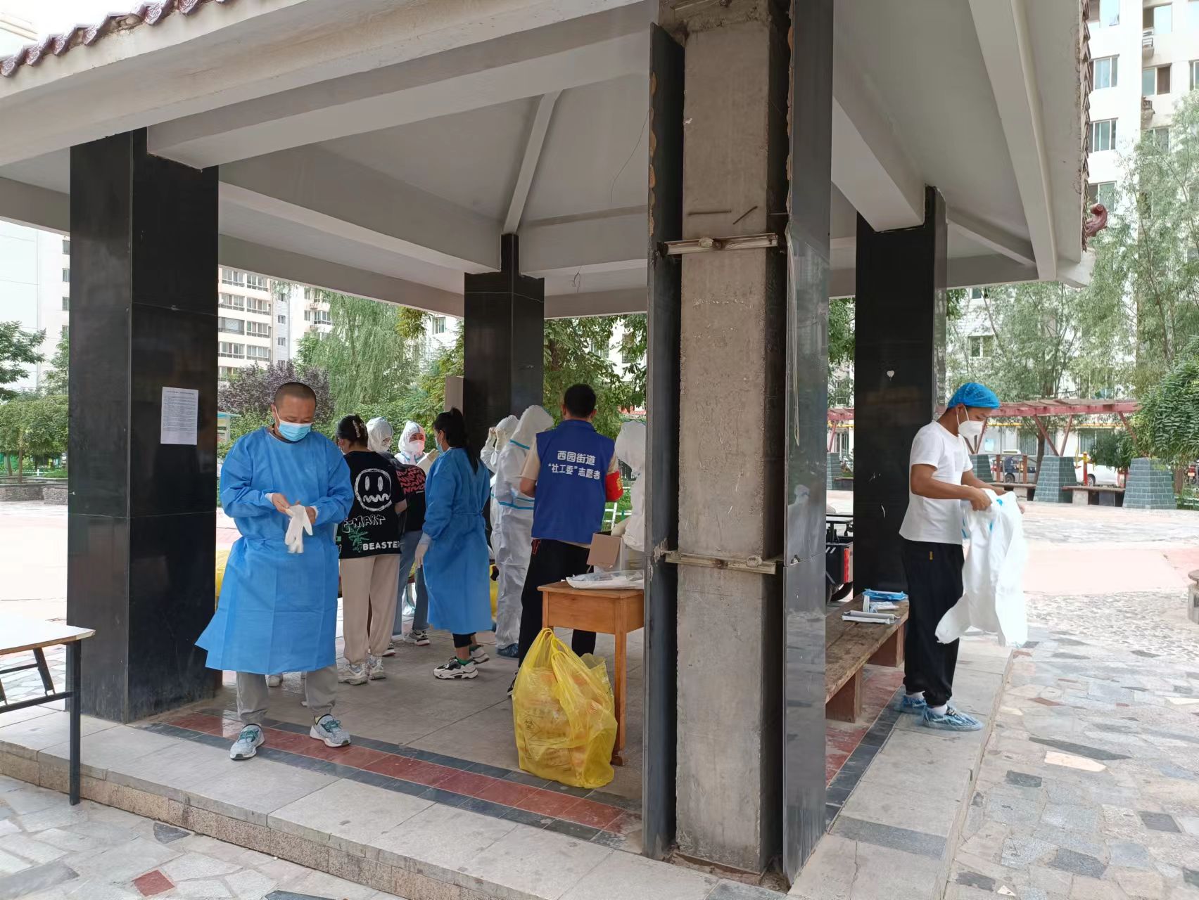 除了報名下沉社區(qū)的人外,還有一些干部職工主動聯(lián)系社區(qū)參加到了志愿服務(wù)者的隊伍中來。對規(guī)劃設(shè)計院第十三黨支部書記、建筑設(shè)計九分院院長路文理和檢測分院的張文慶來說,志愿工作早已輕車熟路,這已經(jīng)是他們第三次參加社區(qū)疫情防控志愿服務(wù)了。本輪疫情發(fā)生后,他們再次逆行而上,義無反顧地沖到疫情防控“第一線”。