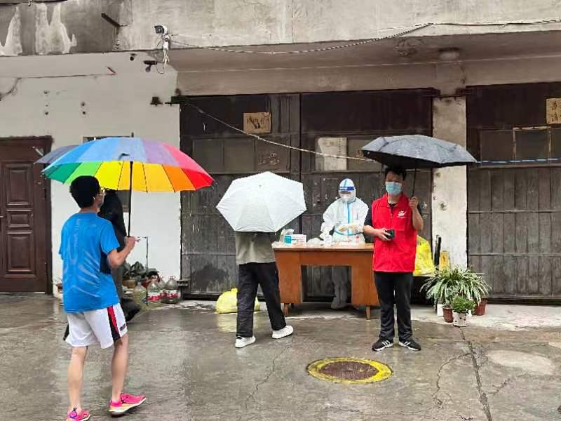 在高風(fēng)險社區(qū),規(guī)劃設(shè)計院第十六黨支部入黨積極分子劉偉正在執(zhí)行“封門”任務(wù)?!耙唤拥酱_診通知,我們就要連夜對密接住戶施行管控措施,工作時間是24小時隨時待命,防護服穿脫太麻煩,累了我找地方靠一會兒就行?!睂O偉略帶疲倦地說道。高風(fēng)險區(qū)意味著與病毒更近距離的接觸,對志愿者的規(guī)范操作要求也更加嚴(yán)格。每一次敲門、登記、核對人數(shù)、掃碼做核酸等看似簡單的流程,他都會在腦海里反復(fù)演練。突然的封門,會有一些居民鬧情緒,面對激烈的言辭,他總能耐心安撫,爭取居民對防控措施更多的理解和支持。空閑時,他會拎著大袋小袋,給住戶送些必備物資,提醒他們做好防護,做些力所能及的事情。勇者不孤,劉偉僅僅是這支隊伍中的一分子,還有像武利平、楊致遠、姚友龍、劉澤靖、孔利兵、巨斌、楊一、劉偉、滿子熠、李文磊、仲乃河、蘇曉文、魏翔等像他一樣的志愿者,正在社區(qū)疫情防控一線,默默地貢獻著自己的力量。他們有的是企業(yè)中層“一把手”,有的是建筑師,有的是規(guī)劃師,有的是財務(wù)管理人員……,但穿上白色的防護服、換上紅色的馬甲,他們就有了一個共同的名字——疫情防控志愿者。