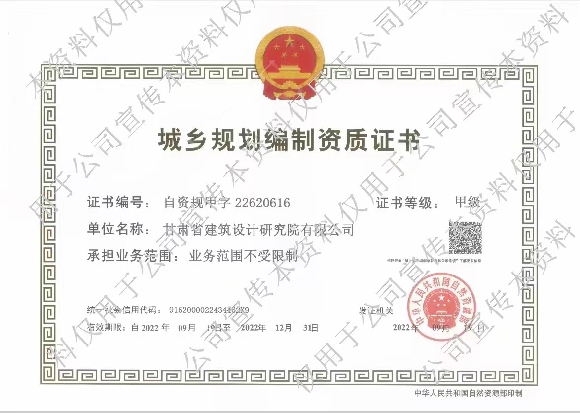 日前,國(guó)家自然資源部發(fā)布《自然資源部關(guān)于2022年第六批城鄉(xiāng)規(guī)劃編制單位甲級(jí)資質(zhì)認(rèn)定的公告》,甘肅省建筑設(shè)計(jì)研究院有限公司名列其中,喜添城鄉(xiāng)規(guī)劃編制甲級(jí)資質(zhì)。