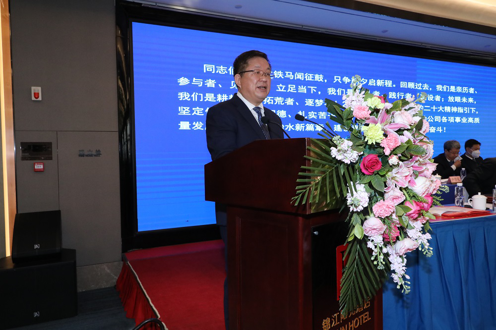 牛軍在講話中指出,水電設(shè)計(jì)院的工作是甘肅水利工作的一個(gè)重要組成部分。過去的一年,水電設(shè)計(jì)院堅(jiān)持以習(xí)近平新時(shí)代中國(guó)特色社會(huì)主義思想為指導(dǎo),切實(shí)踐行“十六字”治水思路,準(zhǔn)確把握全省水利發(fā)展動(dòng)態(tài),緊緊圍繞生產(chǎn)經(jīng)營(yíng)中心任務(wù),實(shí)現(xiàn)快速發(fā)展,為全省水利改革發(fā)展提供了堅(jiān)強(qiáng)的技術(shù)支撐。他要求,新的一年,水電設(shè)計(jì)院一要堅(jiān)持黨的領(lǐng)導(dǎo),深入學(xué)習(xí)貫徹黨的二十大精神,把黨的領(lǐng)導(dǎo)和黨的建設(shè)融入企業(yè)治理各環(huán)節(jié),堅(jiān)持服務(wù)全省水利“五水共建、四網(wǎng)統(tǒng)籌”的部署,為我省“一核三帶”發(fā)展格局、“四強(qiáng)”行動(dòng)提供堅(jiān)強(qiáng)水安全保障。二要發(fā)揮智庫(kù)作用,立足實(shí)際、面向未來,緊抓當(dāng)前水利改革發(fā)展重大機(jī)遇,積極落實(shí)“四抓一打通”方案,推進(jìn)重大引調(diào)水工程和區(qū)域骨干水源建設(shè),完善城鄉(xiāng)輸配水系統(tǒng),主動(dòng)配合謀劃儲(chǔ)備一批水資源支撐保障重大項(xiàng)目,盡快形成“甘肅水網(wǎng)”新格局。三要激活創(chuàng)新引擎,不斷加大科研創(chuàng)新力度,切實(shí)提高企業(yè)核心競(jìng)爭(zhēng)力,努力打造國(guó)內(nèi)一流的水利綜合性院企。深入研究國(guó)家宏觀政策,以全省水安全保障等省級(jí)頂層規(guī)劃為引領(lǐng),著力在黃河治理保護(hù)國(guó)家戰(zhàn)略、白龍江引水、南水北調(diào)西線和黃河上游重大水利工程等重大項(xiàng)目規(guī)劃設(shè)計(jì)方面,提供堅(jiān)實(shí)的技術(shù)支撐。他表示,水電設(shè)計(jì)院的改革發(fā)展與全省水利事業(yè)休戚與共,省水利廳將進(jìn)一步優(yōu)化水利市場(chǎng)營(yíng)商環(huán)境,一如既往支持設(shè)計(jì)院改革發(fā)展,希望水電設(shè)計(jì)院繼續(xù)保持永不懈怠的精神狀態(tài)和一往無前的奮斗姿態(tài),奮力開創(chuàng)水電設(shè)計(jì)院發(fā)展新局面,為甘肅水利事業(yè)高質(zhì)量發(fā)展做出更大貢獻(xiàn)。