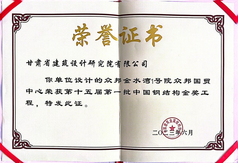 近日,從中國建筑金屬結(jié)構(gòu)協(xié)會傳來喜訊,由省建筑設(shè)計院總建筑師、甘肅省工程勘察設(shè)計大師馮志濤領(lǐng)銜團隊設(shè)計的“眾邦國貿(mào)中心”榮獲“第十五屆第一批中國鋼結(jié)構(gòu)金獎工程”榮譽稱號。