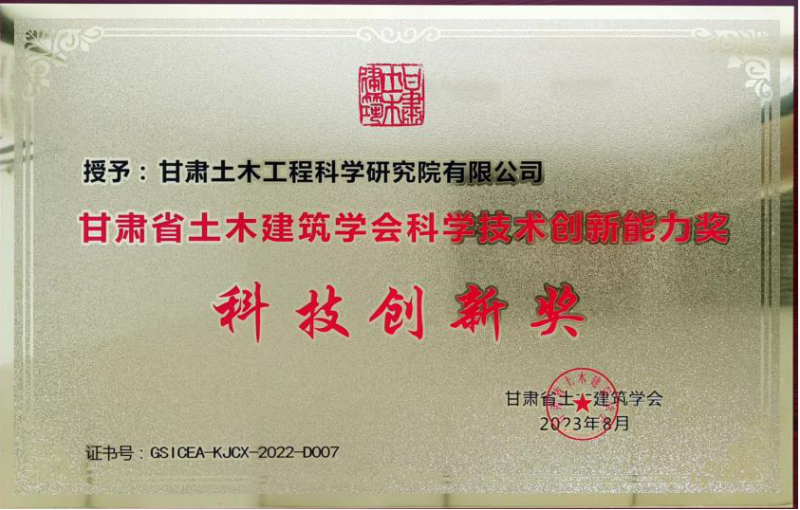 土木工程院榮獲甘肅省土木建筑學(xué)會(huì)科技創(chuàng)新獎(jiǎng)