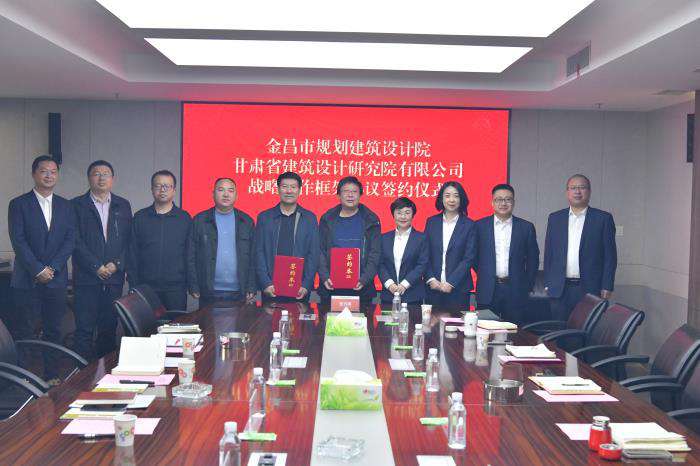 11月7日,省建筑設(shè)計(jì)院與金昌市規(guī)劃建筑設(shè)計(jì)院戰(zhàn)略合作協(xié)議簽訂儀式在蘭州舉行。金昌市規(guī)劃建筑設(shè)計(jì)院董事長(zhǎng)魯?shù)糜?、副總?jīng)理王鋒輝和省建筑設(shè)計(jì)院黨委副書記、總經(jīng)理周文新,副總經(jīng)理王璐參加簽約儀式。