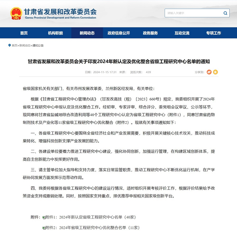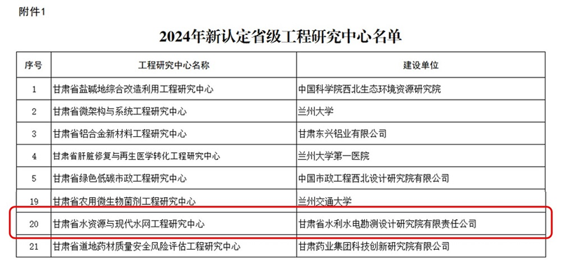 近日,省發(fā)展和改革委員會(huì)公布《2024年新認(rèn)定及優(yōu)化整合省級(jí)工程研究中心名單》,省水電設(shè)計(jì)院申報(bào)的“甘肅省水資源與現(xiàn)代水網(wǎng)”成功獲批立項(xiàng)“省級(jí)工程研究中心”,標(biāo)志著公司在水利工程科研平臺(tái)建設(shè)方面取得了重大突破。
