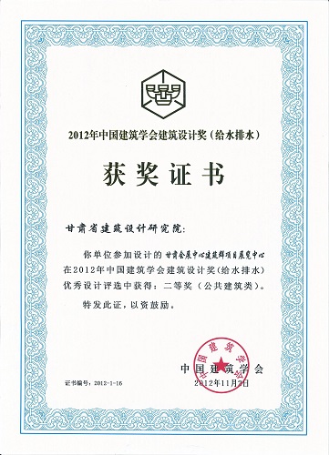 2012年中國建筑學(xué)會設(shè)計(jì)獎甘肅會展中心(給排水)
