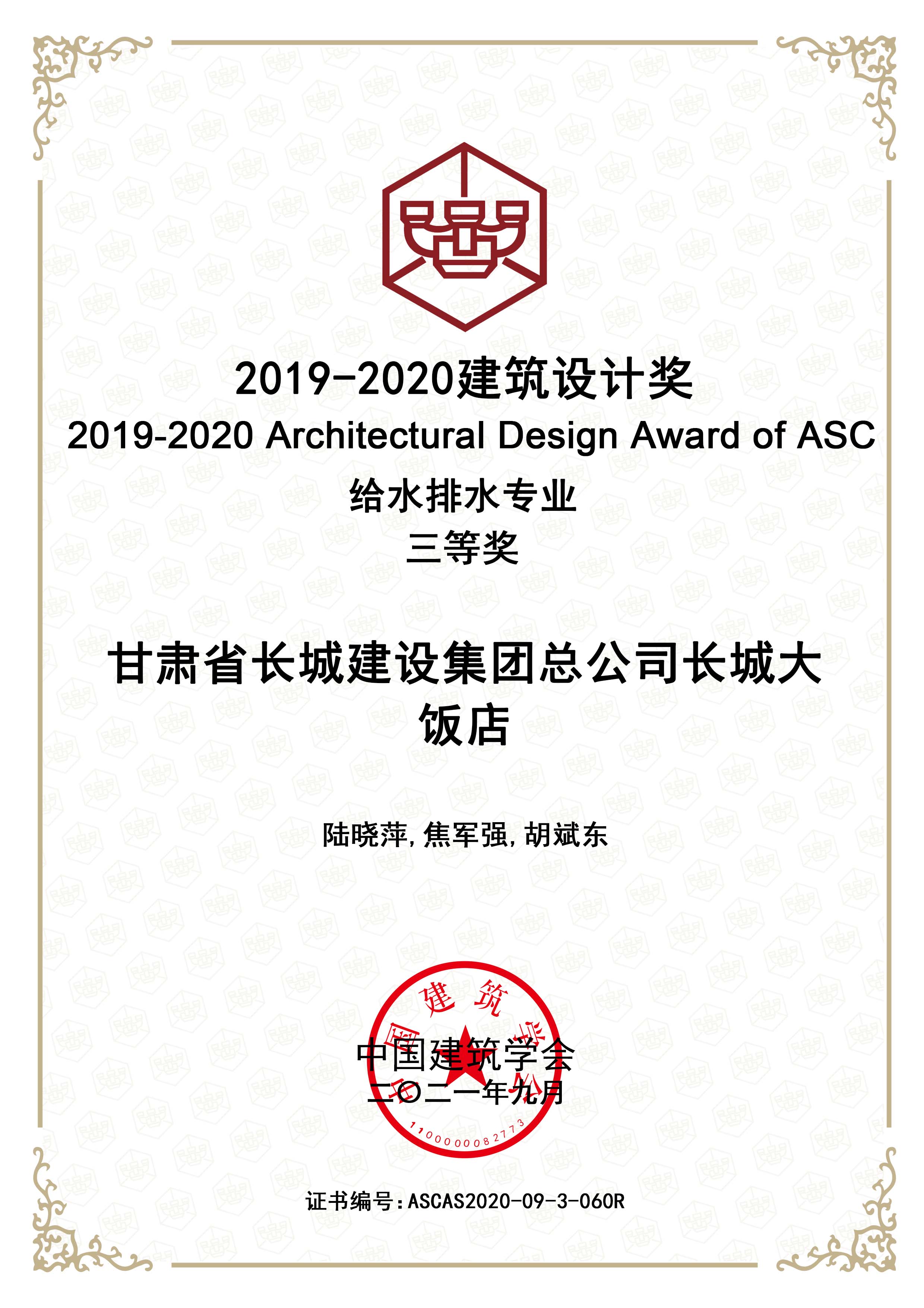 2019—2020建筑設計獎給排水專業(yè)三等獎