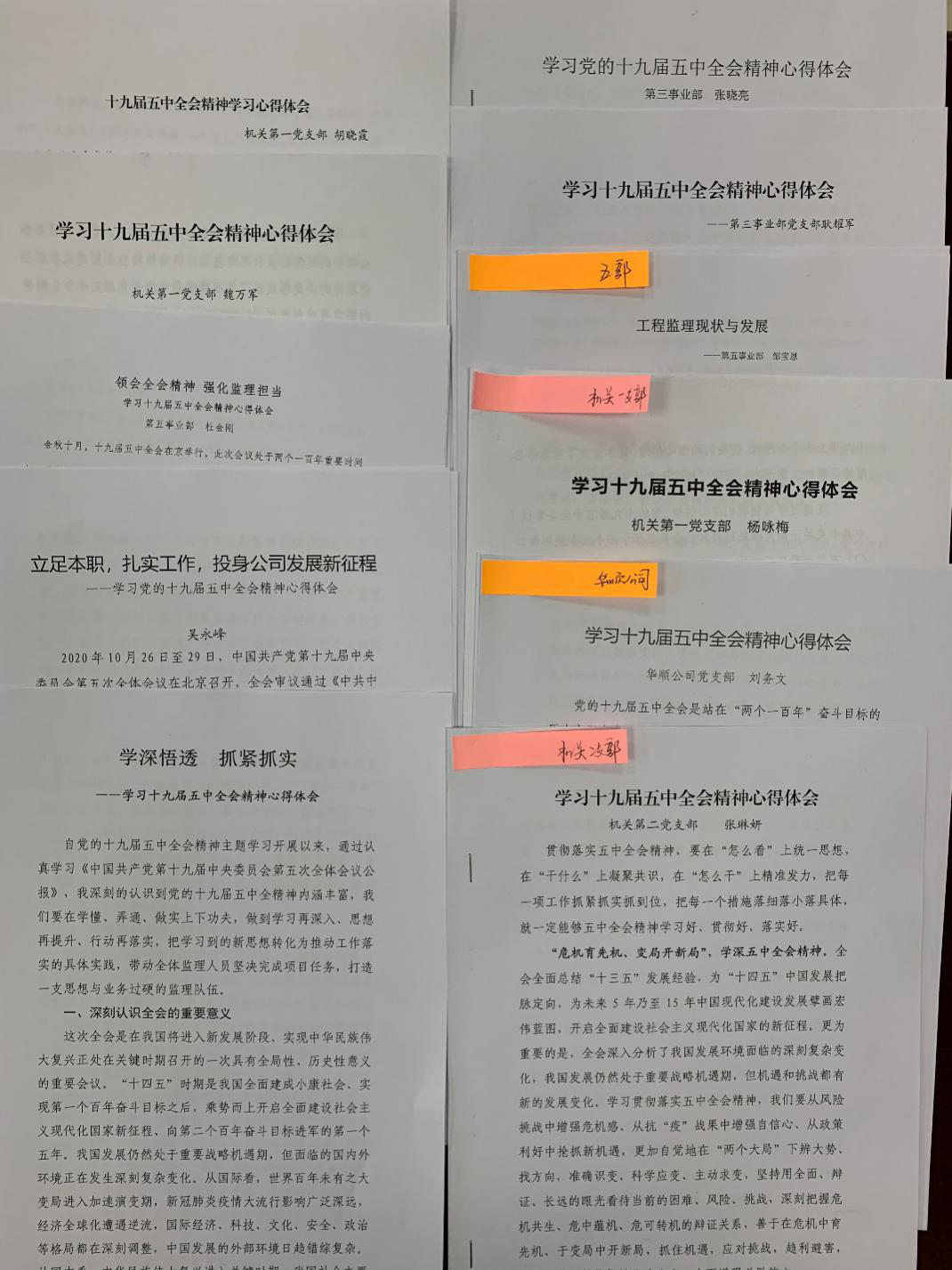 為進(jìn)一步深入學(xué)習(xí)貫徹落實(shí)黨的十九屆五中全會(huì)精神,擴(kuò)大學(xué)習(xí)覆蓋面,擴(kuò)展學(xué)習(xí)的深度,引導(dǎo)全體黨員干部統(tǒng)一思想、凝聚共識(shí),不斷提振精神狀態(tài)、改進(jìn)工作作風(fēng)、提升工作效能,公司黨委專門發(fā)文對(duì)學(xué)習(xí)貫徹五中全會(huì)精神進(jìn)行了專題安排,要求全體黨員在黨委理論學(xué)習(xí)中心組學(xué)、支部學(xué)、部門學(xué)、個(gè)人自學(xué)的基礎(chǔ)上,自覺(jué)撰寫學(xué)習(xí)心得體會(huì),共收集心得體會(huì)84篇。從收到的心得體會(huì)來(lái)看,全體黨員在學(xué)習(xí)貫徹黨的十九大五中全會(huì)精神過(guò)程中動(dòng)腦、入心,做到了做到學(xué)有所思、學(xué)有所慮、學(xué)有所得、學(xué)有所做。