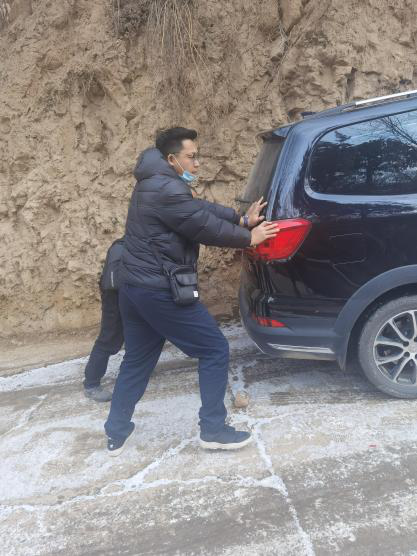 很多在隱患點上的行政村分布在舟曲縣周邊的大山高處,又逢舟曲剛下完大雪,山路崎嶇,道路積雪結(jié)冰,即使在車上套上防滑鏈還是無法到達一些村落。面對重重困難,工程師們沒有退縮,當積雪太深或結(jié)冰地路面太滑,車輛完全無法通行時,他們或推車前行,或頂風冒雪,深一腳淺一腳地步行好幾公里,走到開展工作的村子里去。