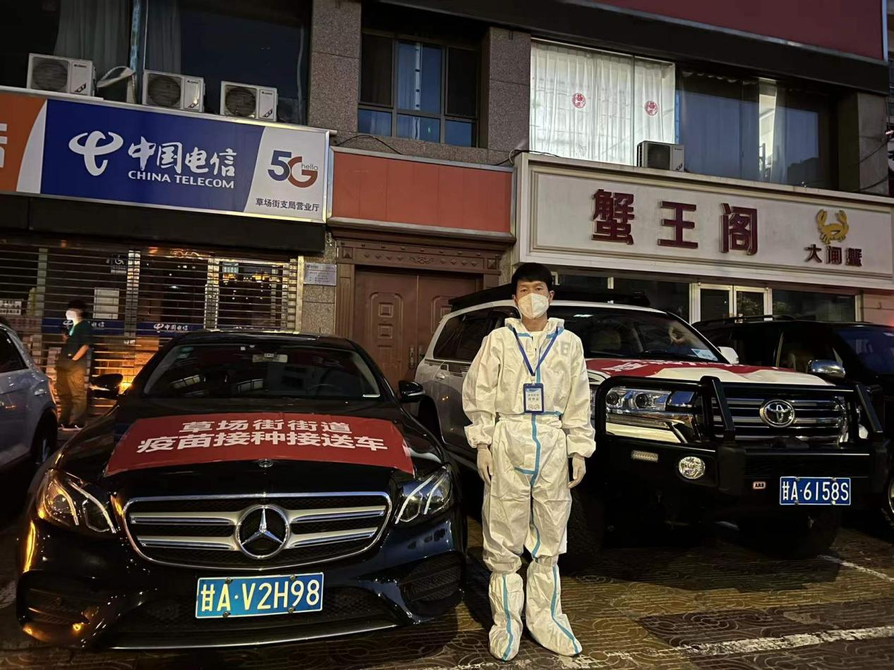 張文慶作為草場街街道愛心車隊的“老司機”,他的任務就是每天開著私家車以“一個采樣點一輛車”的模式護送“大白”上下班,正常的工作時間是下午兩點到第二天凌晨兩點,如果遇到緊急情況,工作到天亮也是常有的事情?!搬t(yī)護人員非常辛苦,能為他們做點什么,我很開心”。每次接送任務結(jié)束后,張文慶都會對車輛進行認真地清洗和消毒,還會在車里準備一些礦泉水和小零食。接送中雖然看不到彼此模樣,但卻依然能夠感受到對方最真摯的微笑。危難時刻,許許多多的張文慶們?yōu)槌鞘虚_辟了一條盡快恢復“煙火氣”的寶貴通道。